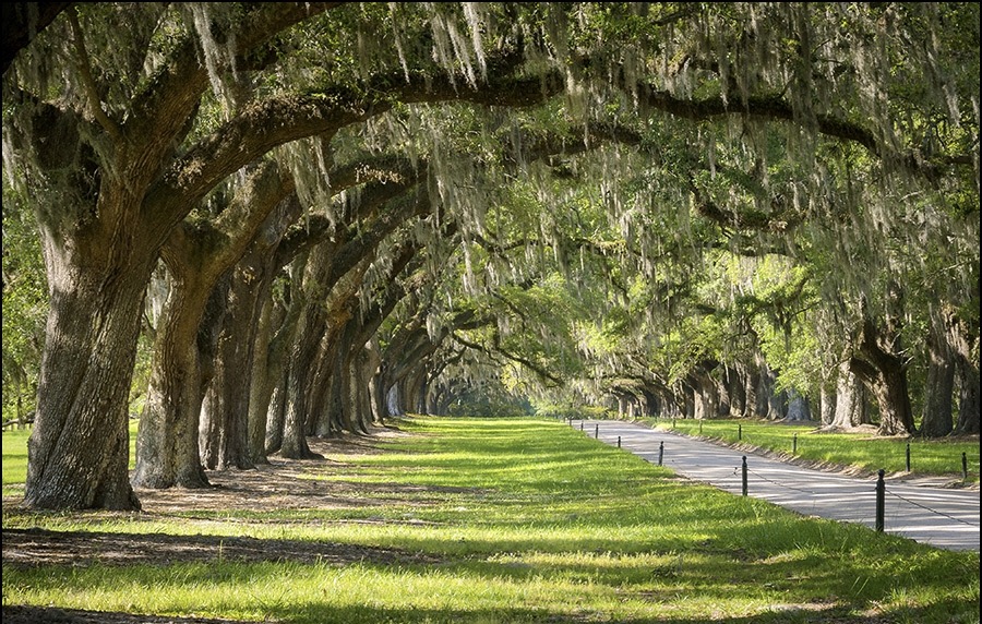 Verena sagt, dass es mit Boone Hall und einer Führung über die populäre Plantagen-Anlage heute klappen wird. Sofort habe ich die Bilder von „Fackeln im Sturm“ oder „North and South“ wie sie im Original heißt im Kopf, die ich als Kind so gern mit meiner Mutter zusammen im Fernsehen gesehen habe. Wir stücken früh und fahren in einer halbstündigen Autofahrt zur Boone Hall Plantation. Der Slang des Mannes, der uns an der Schranke zur Anlage empfängt ist sagen wir mal signifikant. Robert der des muttersprachlichen Englischs ja mächtig ist versteht zwar einige Wörter; ist offensichtlich aber auch nur bedingt in der Lage diese zu einem Sinn ergebenden Satz zusammenzufügen. Er quittiert die gesprochenen Geräusche des Mannes mit einem höflichen „Thank you, Sir“ und fährt zielstrebig irgendwohin. Dann biegen wir in die zumindest für mich so sehr bekannte Oak Tree Allee ein mit 36 auf der einen und 37 über 300 Jahren alten Bäumen auf der anderen Seite. Sie hat ein opulentes Herrenhaus an ihrem Ende und ich weiß sofort hier sind hier richtig.