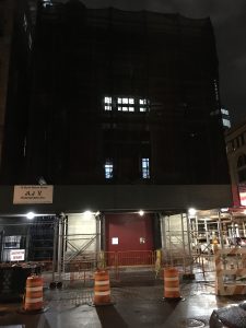Da wir Hunger bekommen suchen wir den Station eigenen Food Court und essen dort nach eingehender Inspektion des Angebots eine wohlschmeckende Suppe, da alles andere für Tanjas Magen vielleicht noch ein wenig zu deftig sein könnte. Mit der Linie 7 und 1 fahren wir nun zur Franklin Street zur Ladder 8 Firestation… Kinobegeisterte wissen natürlich sofort, wer hier ihre Zentrale hat und nur darauf wartet, mit ihrem ECTO-1 zum nächsten Einsatz zu düsen.Als wir dann vor ihrem Tor stehen müssen wir beim Anblick des Gebäude säumenden Gerüsts dann allerdings ernüchtert feststellen, dass die Ghostbusters wohl kürzlich eine Renovierung der Gebäudefassade in Auftrag gegeben haben müssen. Offensichtlich sind sie gut im Geschäft. Der Wiedererkennungswert ist dami allerdings kaum auszumachen. Nur ein paar aufgemalte Bilder auf dem Boden weisen darauf hin, dass hier natürlich keine Feuer bekämpft werden. Bad Timing, schade. Wir laufen gemütlich und an frischer Luft zu unserem Hotel zurück. Jedoch nicht ohne uns zuvor von einem netten New Yorker Stadtbewohner älteren Semesters darauf hinweisen lassen, dass unser Weg zu Fuß viel zu weit wäre und wir für diesen auf jeden Fall wieder zur U-Bahn-Station zurücklaufen sollten. In diese Richtung liefe er nämlich zufälligerweise auch gerade. Wir wollten aber nicht in die Subway zurück und kamen eine halbe Stunde später nach unserem Abendspaziergang im Hotelzimmer an.