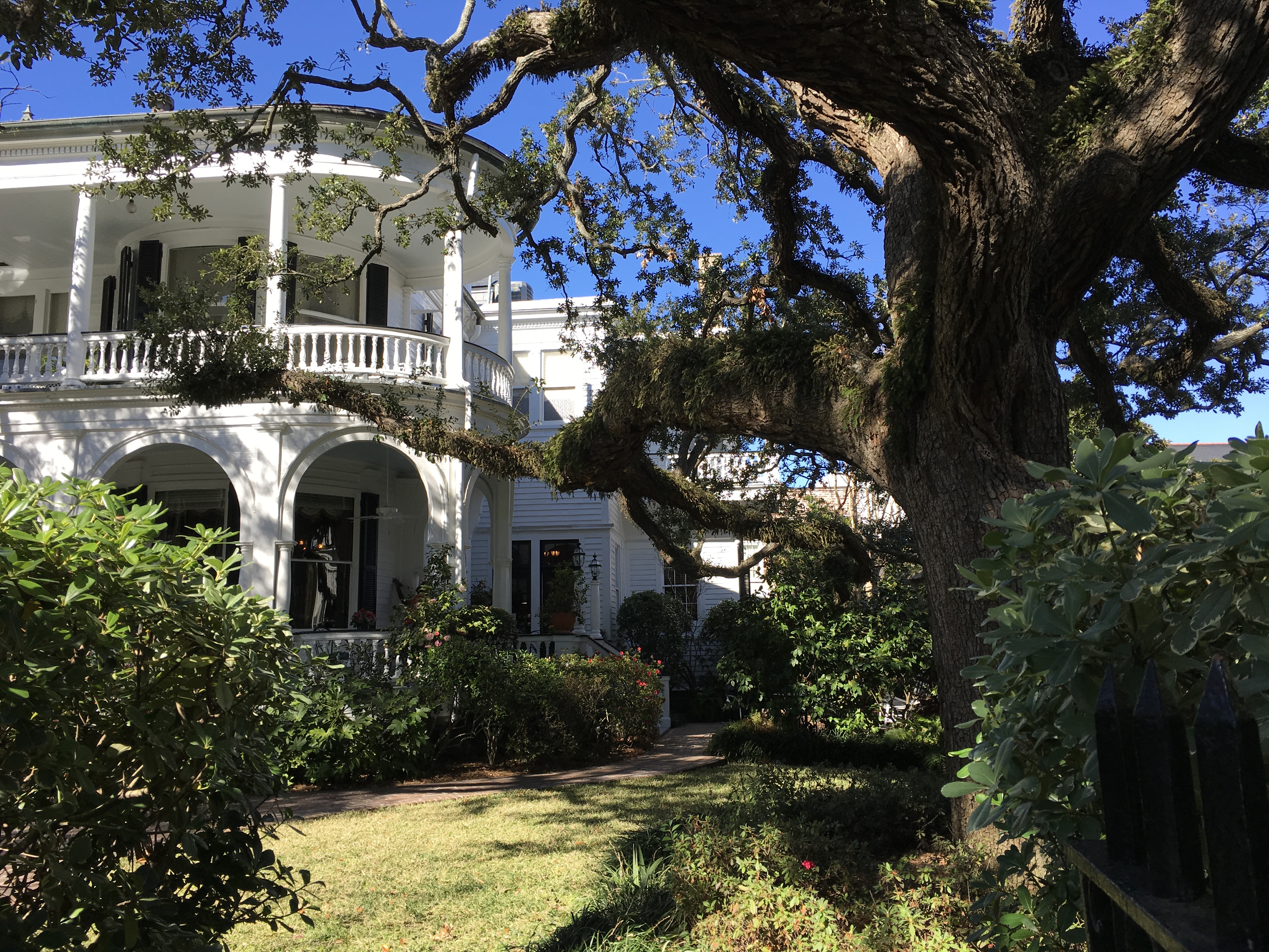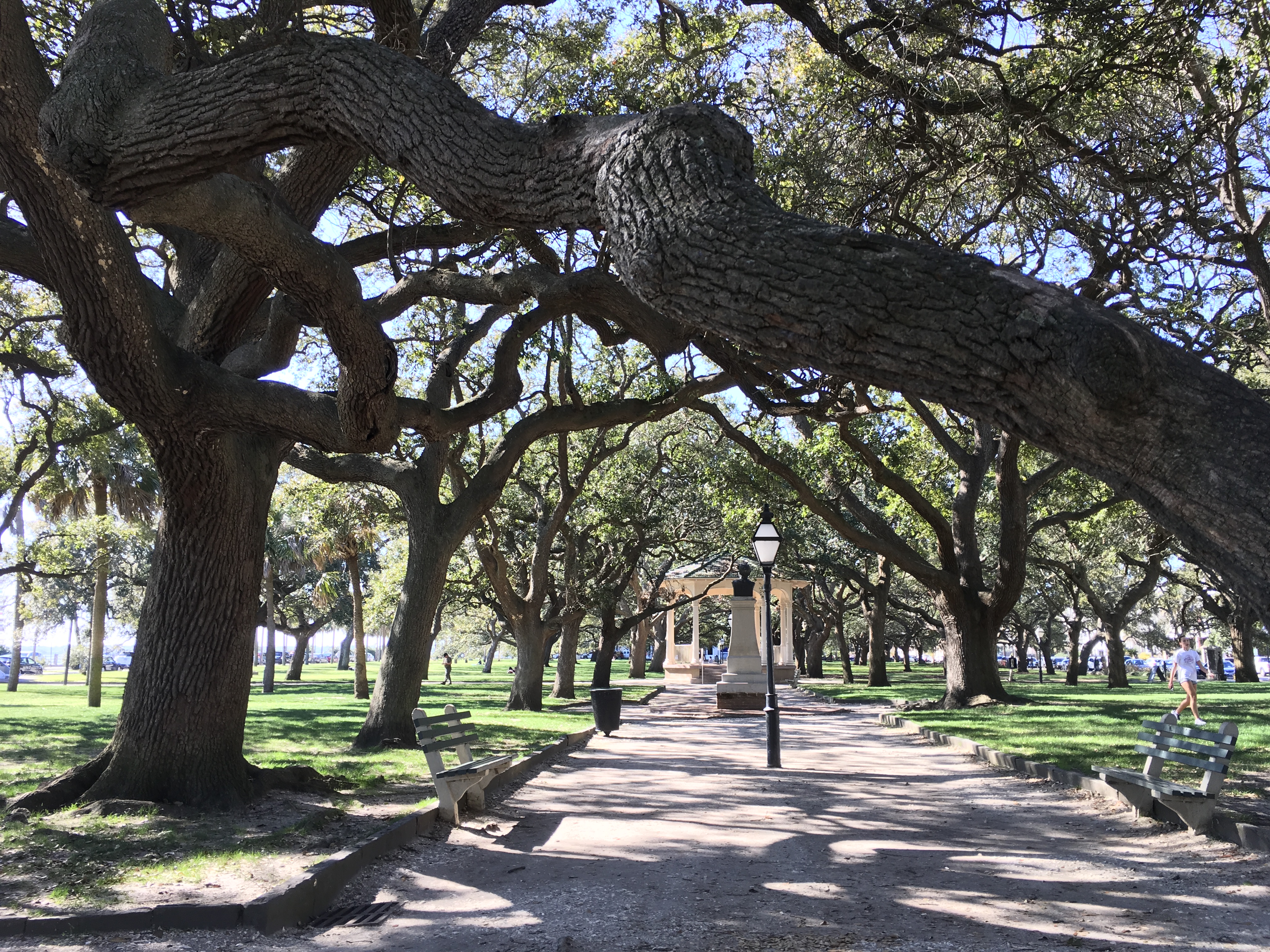 Dort angekommen geht es mit entsprechenden Audiokommentar von Verena durch reizvolle Straßen der Stadt. Sofort offenbart sich Tanja und mir gemütliches Südstaaten-Flair mit Häusern, dir wir so höchstens aus dem Freizeitpark kennen. Sie hier in Wirklichkeit in Gemeinschaft nicht weniger eindrucksvoller alter Bäume zu sehen ist einfach klasse. Verena zirkelt gekonnt ihr Auto auf höhere Ebenen eines Parkhauses hinauf, verweist aber gleichzeitig auf riesige andere hier parkende Trucks, die dem Können ihrer Fahrer noch so einiges mehr abverlangen würden. Ein hier parkender Mercedes Geländewagen sieht hier neben seinen amerikanischen Geschwistern tatsächlich richtig mickrig aus. Kurz bevor ich aussteige lese ich in den News auf dem Smartphonein, dass US-Präsident Trump heute wohl zeitgleich mit uns zu Besuch in Charleston ist, wovon wir jetzt und später aber nichts bemerken werden.