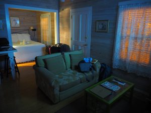 Vieles was normalerweise aus Eisen und Beton gebaut wäre ist hier aus Holz. Auch in den Zimmern dominiert angenehm hölzernes Ambiente. Wir haben sogar einen eigenen Balkon mit Hollywood-Schaukel. Doch wir beschließen uns alldem morgen zu widmen und der zunehmend aufdringlichen Müdigkeit nachzugeben. Nach dem Besuch im Bad, in welchem wirklich alles, und das nicht nur für mich, viel zu niedrig ist geht es in das dafür wesentlich höher als im europäischen Vergleich gelegene Bett. „Wir sehen uns wieder Key West. Bis morgen!“