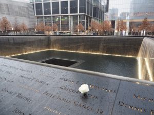 Ich nehme es vorweg, unsere Stimmung scheint es dem Wetter schnell gleichzutun als ich den Platz des 9/11-Memorials „Ground-Zero“ betrete. Schnell kommen mir die umliegenden Gebäude so unheimlich bekannt vor und natürlich drängen sie Tanja und mir sofort wieder in den Kopf: Erinnerungen an einen Tag der für einige heranwachsende Jugendliche zwar tragisch-bedeutsam ist, den 11. September 2001 jedoch auch nur noch aus ihren Geschichtsbüchern kennen.