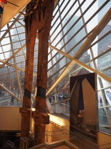 Die Wolkenkratzer decken sich wieder ein mit Wolken und wir beschließen ins nahgelegene Museum in die Tiefe zu steigen. 24$ kostet das, weswegen es bei vielen US-Amerikanern als wahrgenommene Touristenattraktion durchaus in der Kritik steht. Uns ist der Besuch das Geld wert. Der Gang nach unten ist durchaus wortwörtlich gemeint, da wir im Innern auf Fundament-Niveau am World Trade Center und seinem tragischen Schicksal vorbeigeführt werden. Natürlich sind wir uns um der Bedeutsamkeit dieses Ortes sehr bewusst insbesondere für die in diesem Land geborenen Menschen, dennoch befürchtete zumindest ich, dass es vielleicht als ein Art Ausstellung mit Entertainment-Wert konzipiert sein könnte.