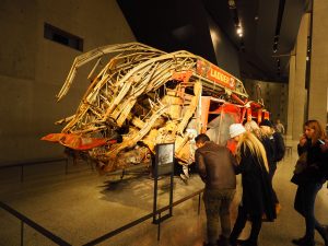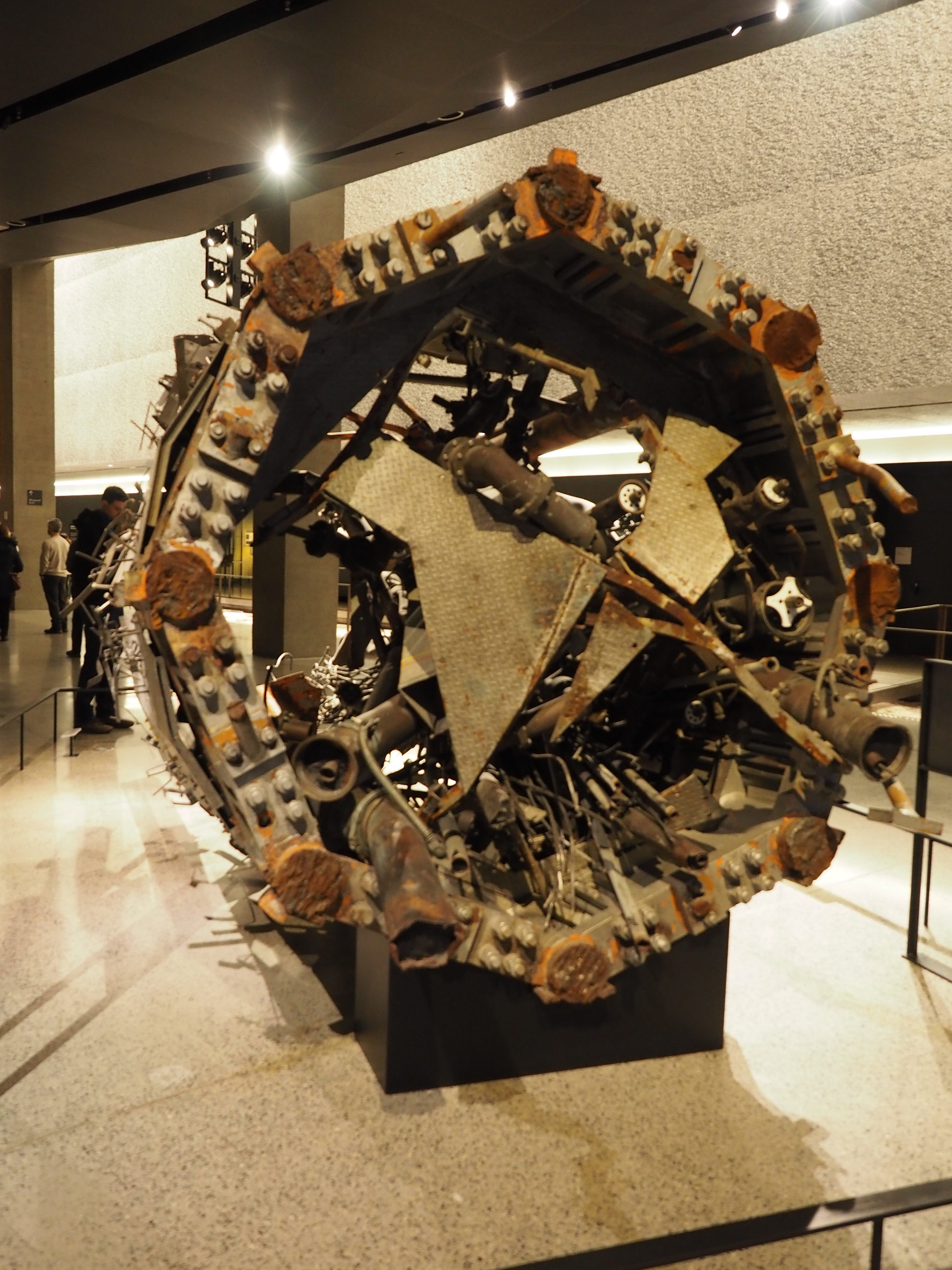 Und doch ist es auch beeindruckend zu sehen, wie stark Menschen sein können. Es gab auch Anrufe mit fester Stimme, die jeden einzelnen zuvor erlebten Tag wertschätzten, Familie und Angehörigen dazu aufriefen sich an sie in Freude zu erinnern und ein fröhliches Leben zu führen. Menschen die sich völlig aufopferten um anderen Menschen zu helfen. Aber der Stolz der Amerikaner sollte dennoch mit der Zeit zurückkehren. In einem kurzen Film wird der Wiederaufbau des Geländes dokumentiert. Angehörige sprechen davon, dass diese Wunde langsam als weniger schmerzhaft aber als nicht weniger wichtig empfunden wird. Diese Narbe sollte gezeigt werden. Hier beim Gang durch die Exponate wird sie sehr sicht- und spürbar, sei es durch tonnenschwere verbogene Metallträger, die abgebrochene Dachantenne oder einen Feuerwagen, der durch herabstürzende Geäudeteile nicht nur sein Führerhaus verlor, sondern auch sämtliche seiner Feuerwehrmänner im Einsatz.